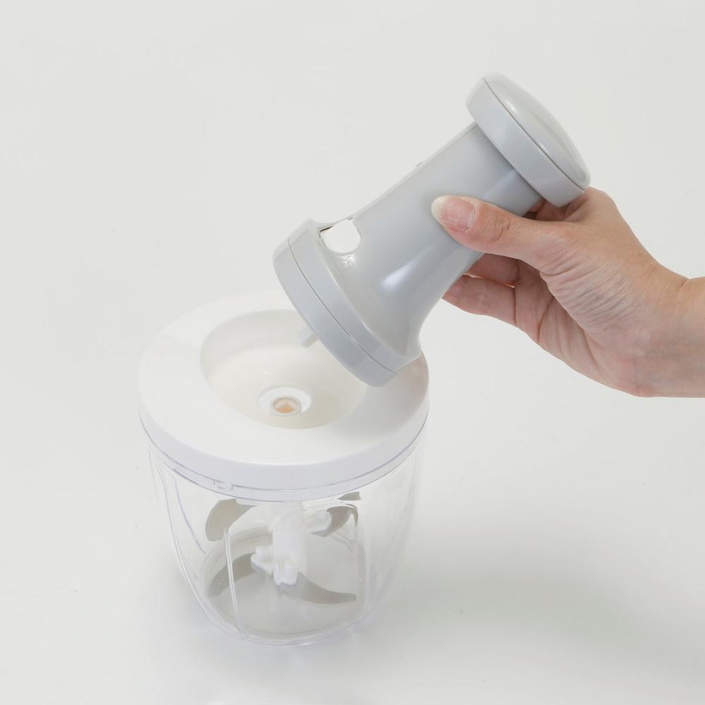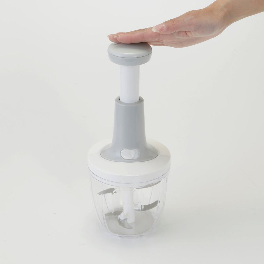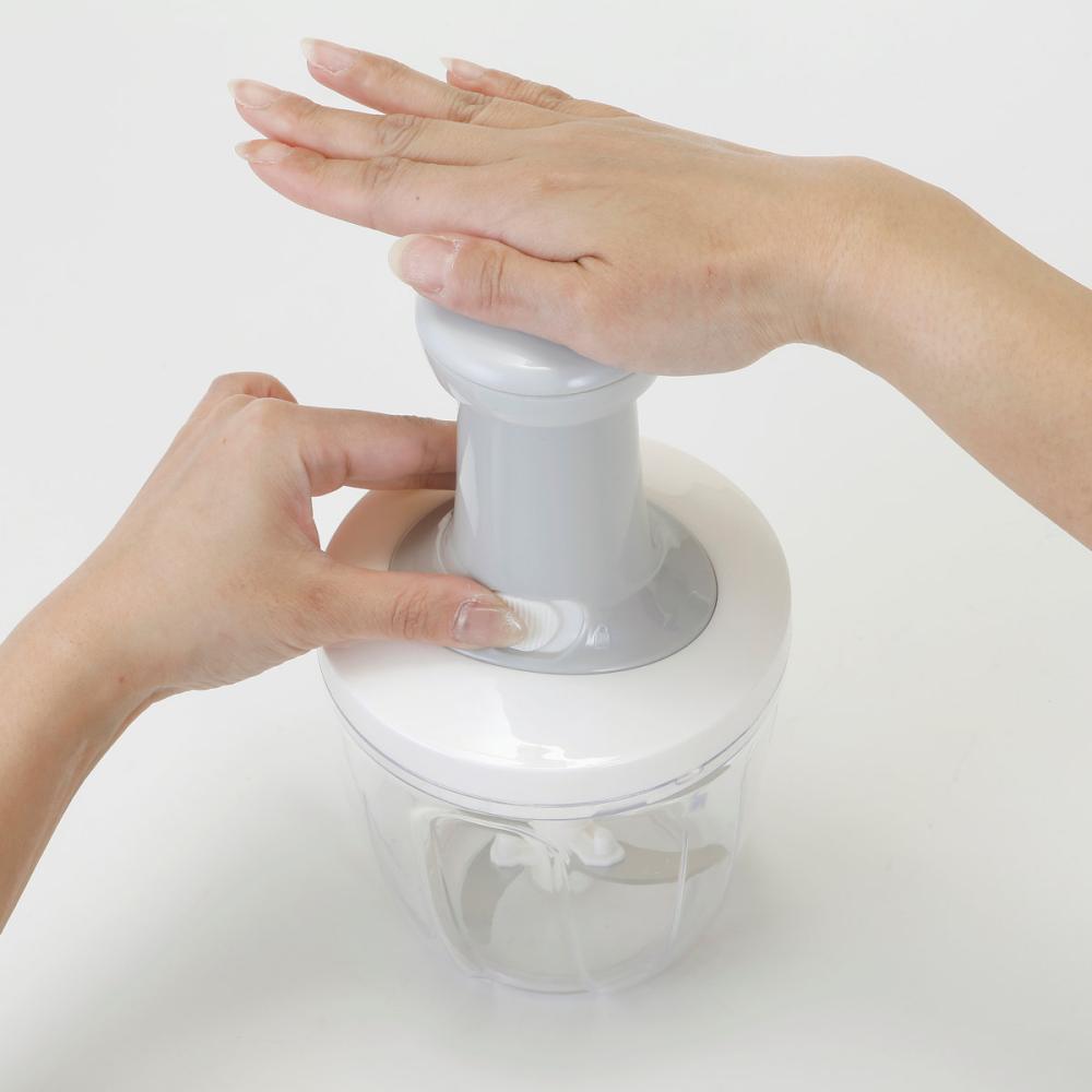 ■小さくカットした野菜を容器に入れてハンドルを繰り返しプッシュするだけで簡単にみじん切りができる