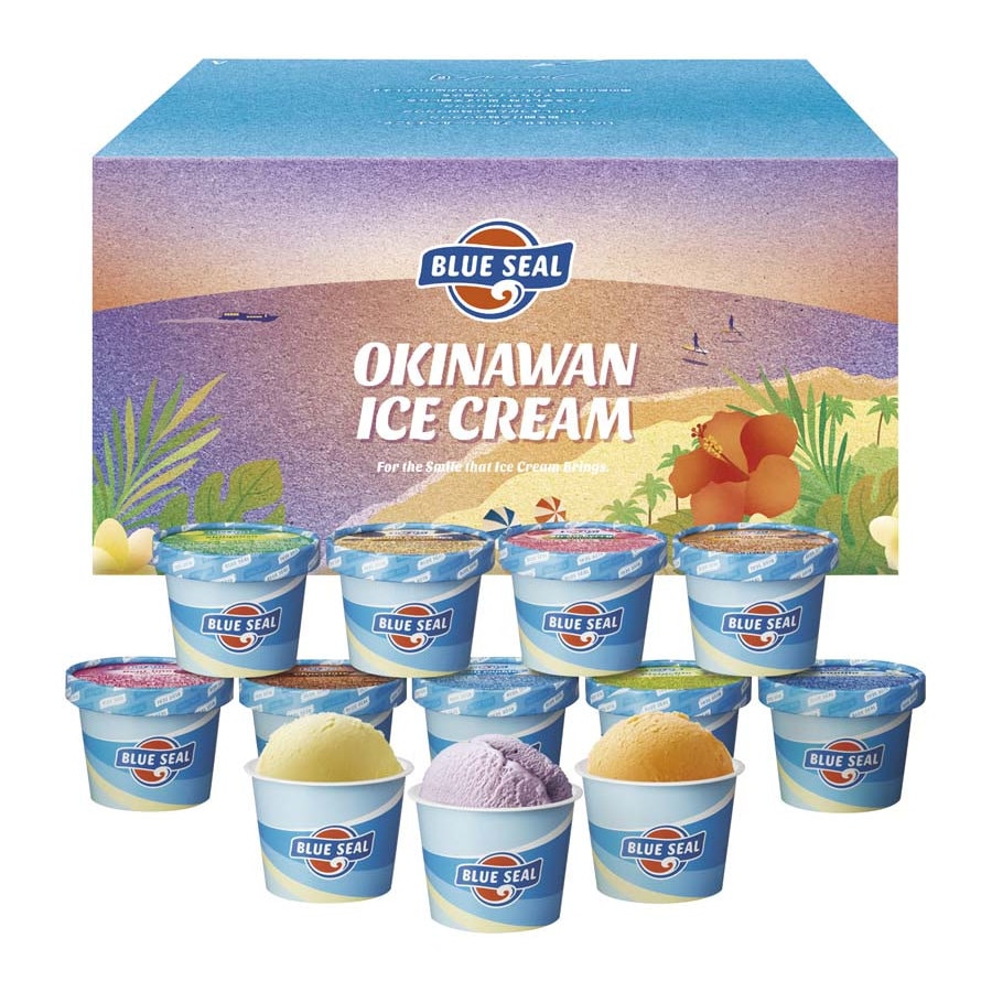 【セット内容】110mlカップバニラ、チョコレート、ストロべリー、ピスタチオ、バニラ&クッキー、ウベ、沖縄紅イモ、塩ちんすこう、沖縄シークヮーサー、沖縄黒糖、沖縄マンゴー、沖縄パイン、12種類、各1個