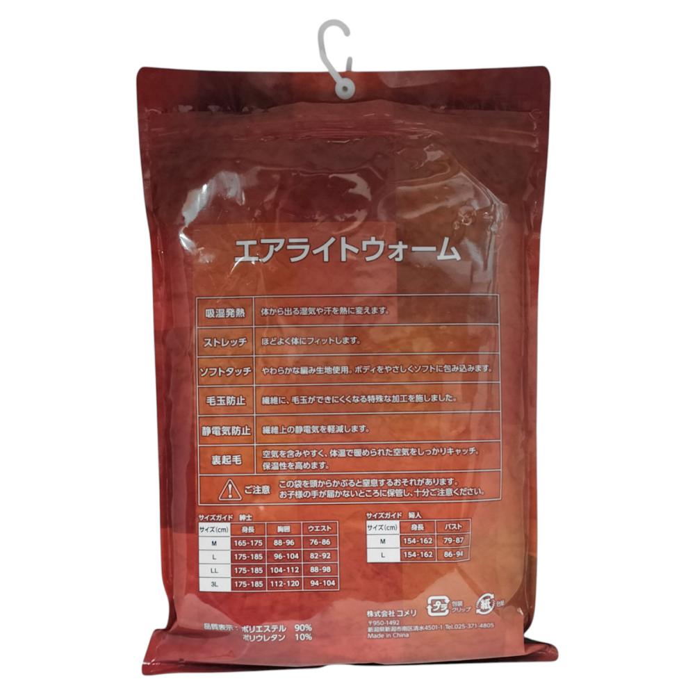 ●吸湿発熱 体から出る湿気や汗を熱に変えます。 ●ストレッチ ほどよく体にフィットします。 ●ソフトタッチ やわらかな編み生地使用。ボディをやさしくソフトに包み込みます。 ●毛玉防止 繊維に、毛玉ができにくくなる特殊な加工を施しました。 ●静電気防止 繊維上の静電気を軽減します。 ●裏起毛 空気を含みやすく、体温で暖められた空気をしっかりキャッチ。保温性を高めます。 【組成】 ・ポリエステル90%、ポリウレタン10%