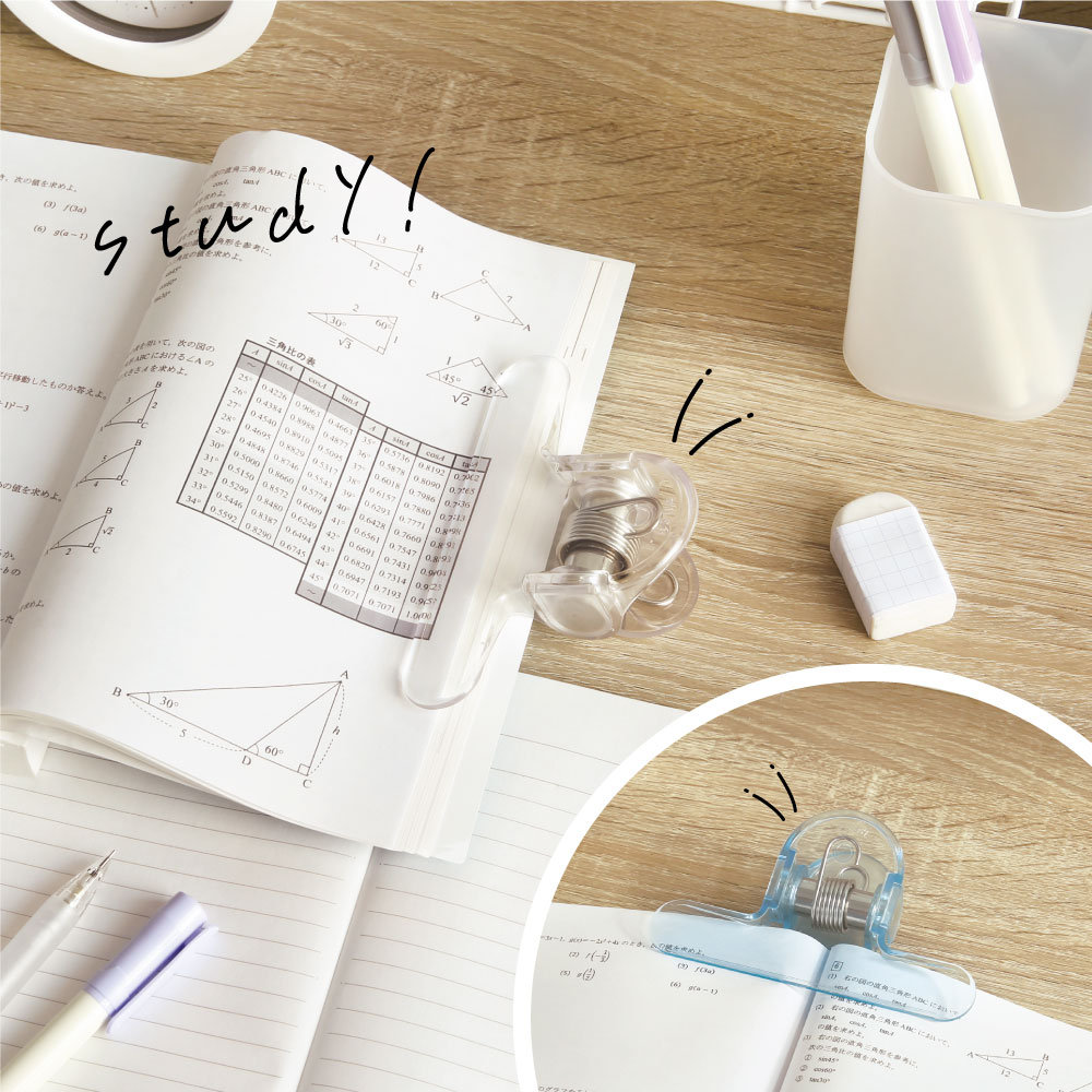 幅広設計なので、本の片側(小口)・上側(天)どちらもはさめる。2WAYタイプ。