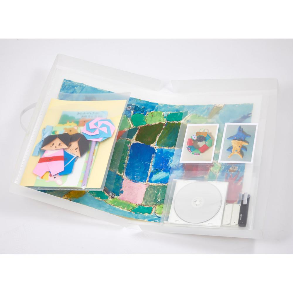 A5ポケット、データ保存ポケット、A4ポケット、絵画作品ポケット、取っ手付き