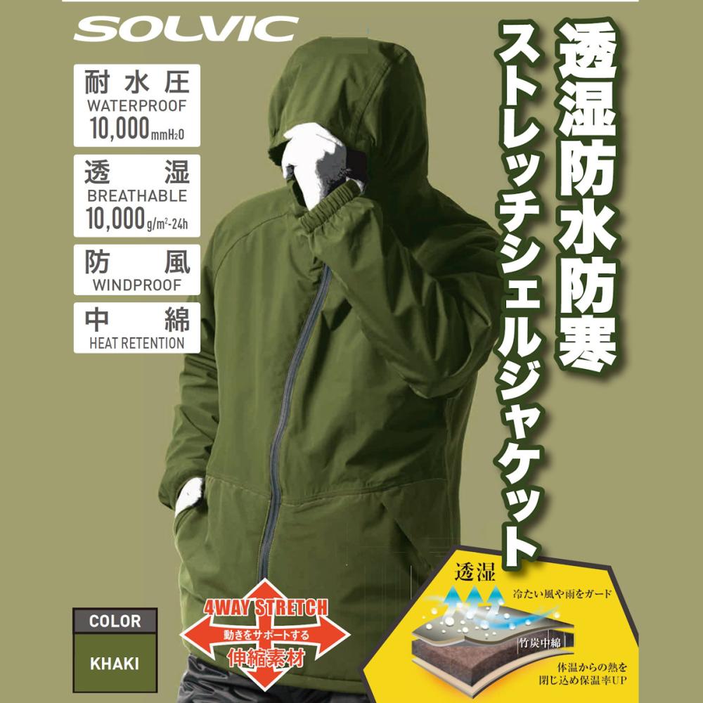 ●透湿防水シートを中層に使用しているので蒸れにくい、冷たい風や雨をガード 耐水圧10,000mm、透湿度10,000g/m2/24h ●竹炭中綿入りであったか 保温性に優れた竹炭中綿 を身頃部分に使用。 遠赤外線効果であたたか さがさらにアップします。 ●4WAYストレッチで動きやすい 【組成】 表:ポリエステル100% (熱可塑性ポリウレタンラミネート) 中綿:ポリエステル100% 裏:ポリエステル100% はっ水(水をはじきやすい) 【取扱いのご注意】 ・汚れは水に濡らした布で拭き取り、溶剤及び洗剤等を使用しないでください。 ・火や熱源のそばに置かないでください。軟化や変形することがあります。 ・アイロンは使用しないでください。 ・使用後は乾いた布で水気を拭き取り、直射日光を避けた風通しの良いところで必ず陰干しにしてください。 ・体質によってはかゆみ、発疹などを起こすことがあります。異常を感じたら使用を中止して医師に相談してください。 ・刃物や尖ったもの等で傷をつけないよう注意してください。水漏れの原因になります。 ・汗により中で蒸れて衣服を濡らすことがあります。 ・自転車・オートバイの運転など風圧をうける状況下では部分的に水が浸水するおそれがありますのでご注意ください。 ・本商品はポケット付き商品ですが、ポケットに浸水する可能性がありますのでお気をつけください。