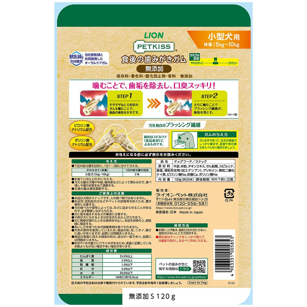 ピロリン酸ナトリウム、ポリリン酸ナトリウム配合。小型犬に適したサイズ。