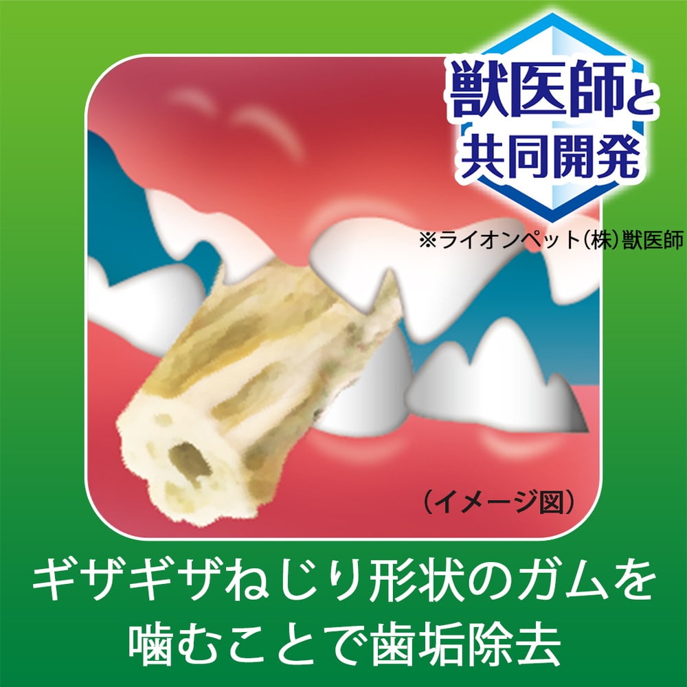 ライオン社独自のブラッシング繊維のガムをギザギザねじり形状に。