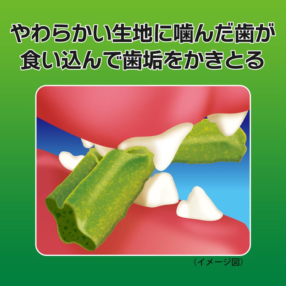 やわらかい生地に噛んだ歯がくい込んでしっかり歯垢を除去。