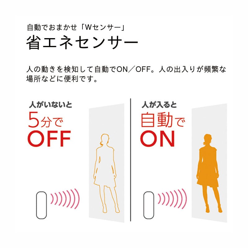・人の動きを検知して自動でON/OFFする「省エネセンサー」を活用すれば、人の出入りが頻繁な場所などに便利です。