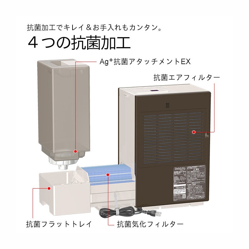 ・吹出し口も熱くならず、火傷の心配もありません。選べる湿度設定とセンサーの働きで、快適な湿度を自動で保ちます。 ・静音設計で、業界トップクラスの静かさを実現。 ・カンタン取替えトレイカバーがついているので、トレイの洗浄不要