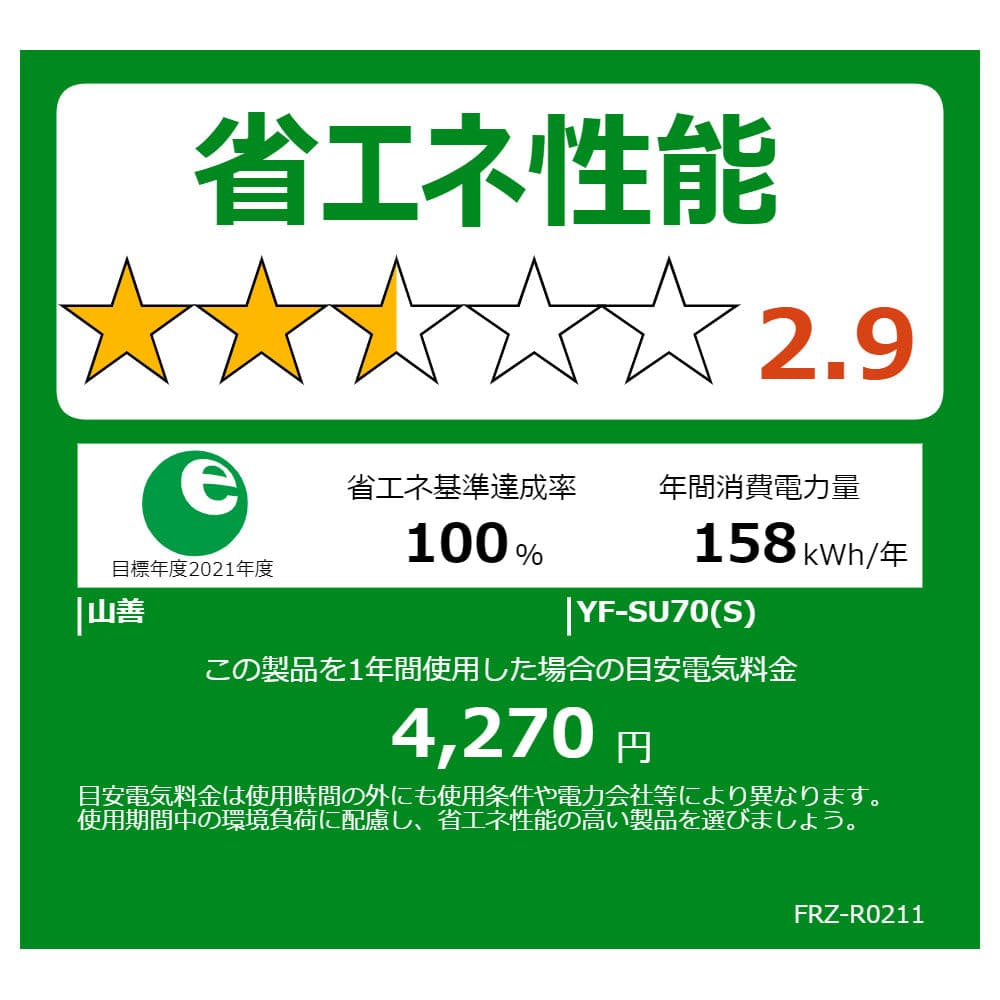 ・電源:AC100V(50/60Hz) ・年間消費電力量(50/60Hz):158kwh/年 ・定格内容積:70L ・運転音:35dB静音設計 ・省エネ達成率:100% ・キャスター付きで移動も楽々 ・3段引き出しタイプ ・R600ノンフロン設計 ・冷凍室のスペースのお悩みを解決 ・電源コードの長さ:約1.8m