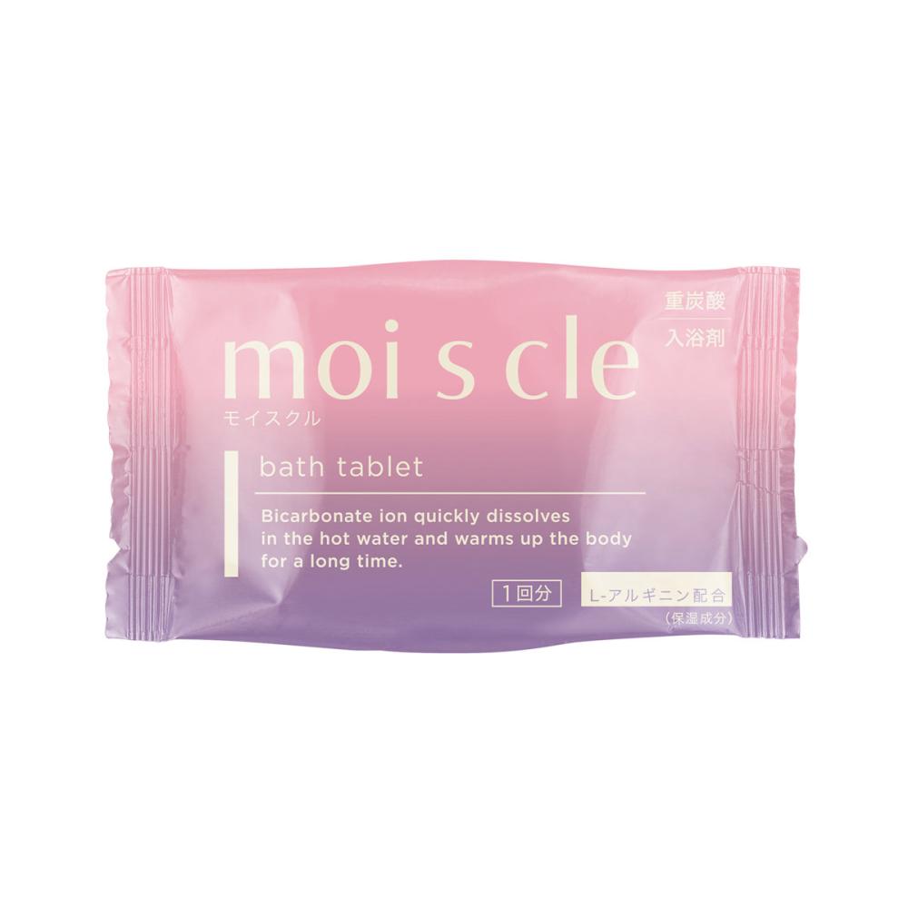 ●素材:炭酸水素Na、炭酸Na ●販売名:ノボピンタブK2 ●品名:moi s cle(モイスクル) ●有効成分:炭酸水素Na、炭酸Na ●その他成分:コハク酸、グリシン、L-アルギニン、他3成分 ●効能:疲労回復、腰痛、肩のこり、冷え症、打ち身、くじき、あせも、神経痛、リウマチ、しもやけ、荒れ性、ひび、あかぎれ、しっしん、にきび、産前産後の冷え症、痔 ●使用方法:180~200Lのお湯に1錠を溶かしてご使用ください。40℃前後のお湯にじっくりと15分以上の入浴をおすすめします。