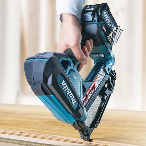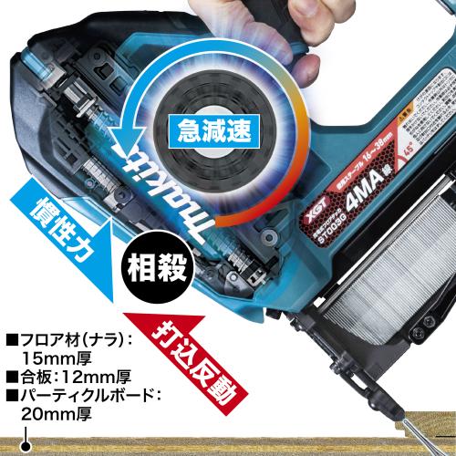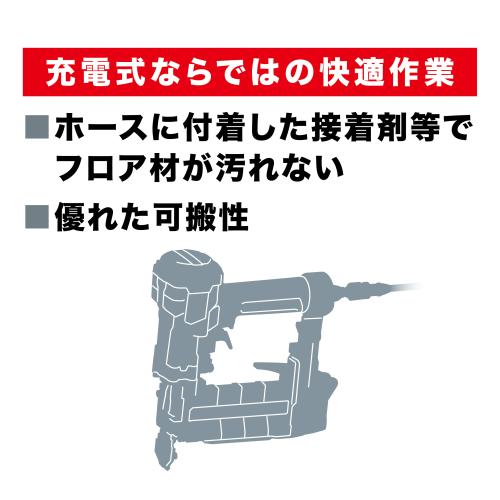●バッテリ:40Vmax ●ハイパワー:高速回転するフライホイールにドライバを押し当て、ステープルを打ち出す。堅い材料にも安定的に打ち込み可能。 ●低反動:打出し時に急減速したフライホイールの「慣性力」が「打込反動」を相殺し反動を吸収。堅い材料への打ち損じも低減。 ●重ね張りリフォーム作業に 45°で打ちやすい重心位置と形状 巾木で隠れる余裕の隅打ち3.5mm 強化石膏ボード張りにも使用可能 ●1充電当たりの作業量(目安):約1,200本(BL4025装着時) ●ステープル装填数:MA線フローリングステープル 84(1連)/90(最大)、MA線ステープル 79(1連)/90(最大) ●使用ステープルサイズ:MA線フローリングステープル 幅4×長さ25~38mm、MA線ステープル 幅4×長さ16~38mm 【標準付属品】 ノーズアダプタ、六角棒スパナ3、セフティーゴーグル、フック