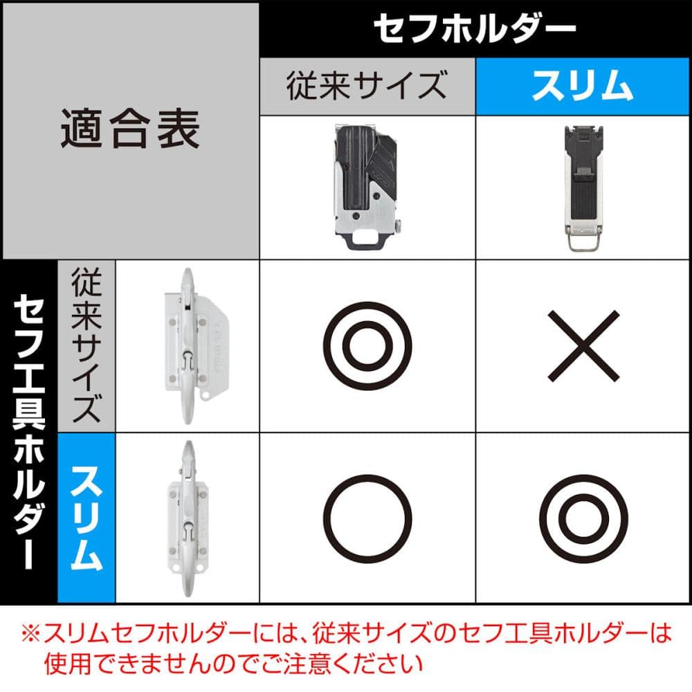 ●強度はそのままベースプレートがスリムに! ●セフホルダーに収めた時のガタつきを防止する「バネロック構造」を採用 ●スリムセフ、従来のセフ(右用・左用)、全てのセフホルダーに使用可能 ●軽量&強度バランスのとれた肉厚のアルミ製 ●フォージングによるトライアングル成形により、従来の丸棒に比べて開き強度が約1.5倍(設計値) ●シャーボルト用メガネレンチ10,000回以上着脱の耐久性 ●安心・安定のリベット止め ●工具が滑らない凹溝付ゲート ※セフホルダーは別売となります。