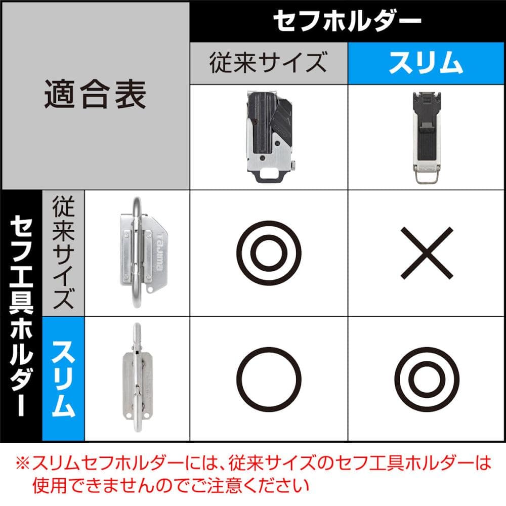●強度はそのままベースプレートがスリムに! ●セフホルダーに収めた時のガタつきを防止する「バネロック構造」を採用 ●スリムセフ、従来のセフ(右用・左用)、全てのセフホルダーに使用可能 ●耐摩耗に優れた高耐久ステンレス製 破断強度はアルミの約2倍以上の高強度(従来品比) ●オールステンレスで錆びにくい ●線径8mmの太軸ステンレス材を採用 ●安心・安定のリベット止め ●カチッと決まる高耐久可倒構造 ※セフホルダーは別売となります