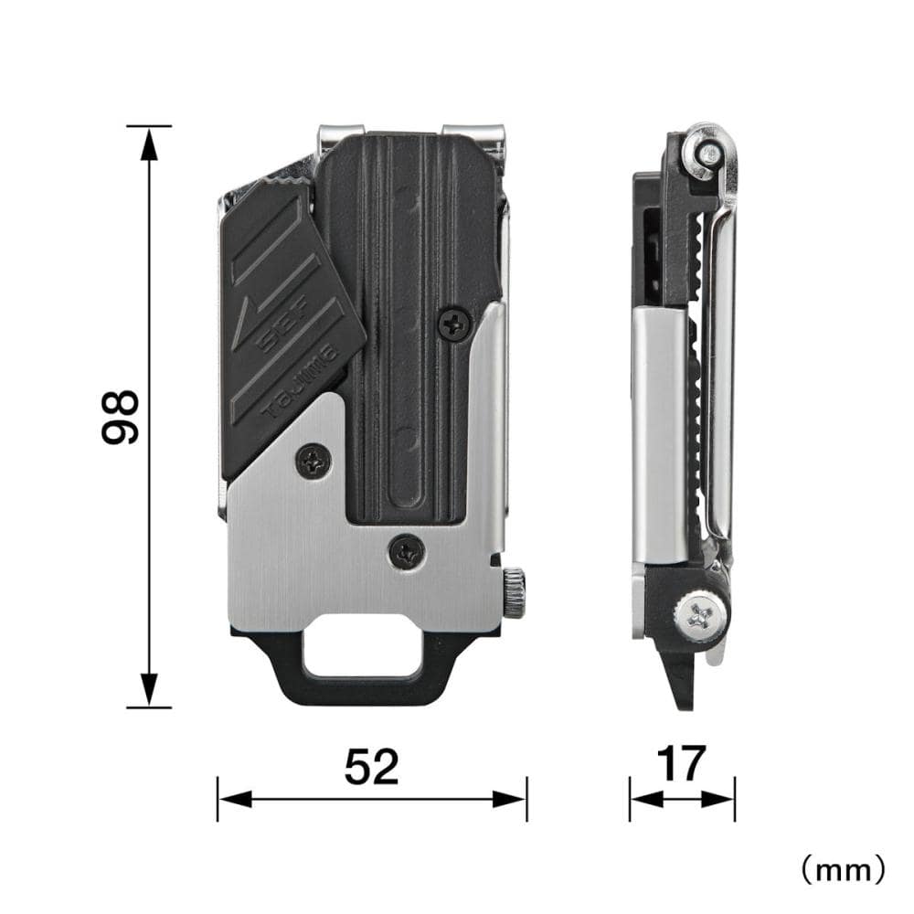 ●外寸:高さ98×幅52×奥行17mm ●製品重量:125g ●取付方式:固定式(ネジ式) ●対応ベルト:胴ベルト(幅60mm以内※、厚み3mm以内)※ベルトループを跨ぐ場合は幅53mm以下のベルトのみ対応 ●ベルトに掛かる重量:3kgまで ●ボタン位置:左ボタン ※嵌合部(オス側の部品)は付属されていません。 ※上下連結はできません。