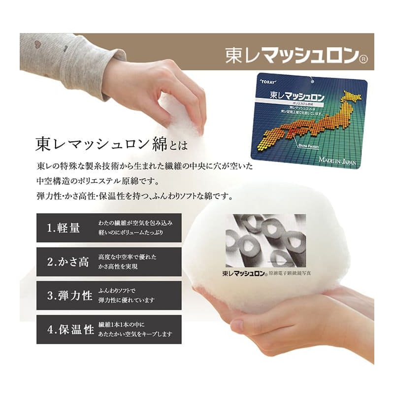 ■東レマッシュロン綿を使用 東レが開発した繊維の中央に穴が空いた中空構造のポリエステル綿です。1本1本の中にあたたかい空気をキープすることで高い保温性を発揮します。保温性、軽量性、弾力性、かさ高性を合わせ持つ高機能綿です。 ■フランネル生地 細かくなめららかな肌ざわりのフランネル生地はどこに触れても暖かく感じます。 ■国内綿入れでボリュームたっぷり 国内で丁寧に綿入れ加工しています。 ■シンプルと北欧柄が程よくミックスされ、高見えするこたつ布団です。