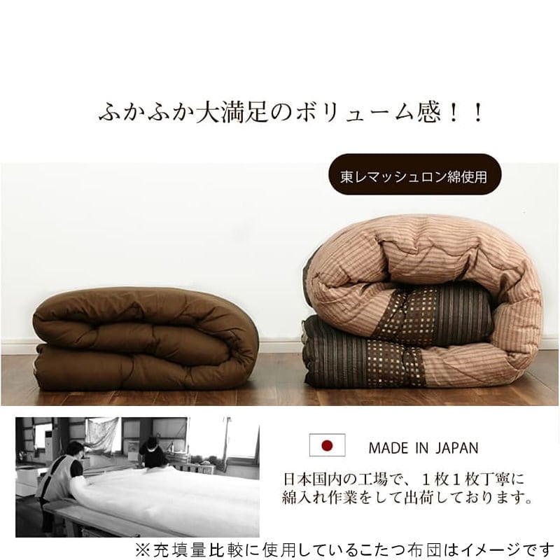 【対応するこたつ天板サイズ】 105~120×75×90cm 【生地特徴】 裏地:フランネル 【洗濯】 手洗い可 【材質】 生地:ポリエステル 充填物:ポリエステル(東レマッシュロン綿) 【充填量】 約2.5kg(内東レマッシュロン綿:約2kg)