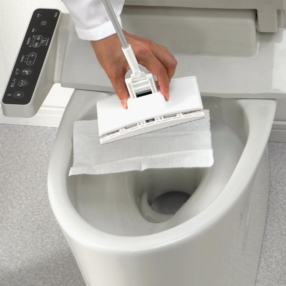 ■柄の部分を引いて押すだけで簡単にシートをセット。掃除後は汚れたシートを触らずに取り外しできます。