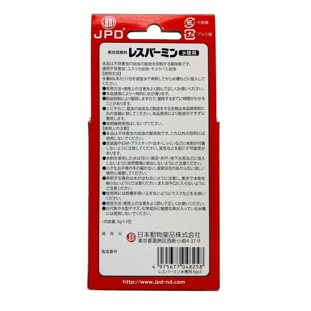 お取り扱い上の注意:〇本品は不快害虫の幼虫の駆除剤です。これ以外の目的には使用しないでください。 〇小さなお子様の手の届かない場所に保管してください。 〇直射日光のあたらない涼しい場所に保管してください。 〇希釈する場合は水がはねないように注意し、素手で本剤を触らないようにご注意 ください。また目やロに入らないようにご注意ください。 〇使用時には粉塵を吸い込まないようにマスクなどをお使いください。 〇使用方法?使用上の注意をよく読んで正しくお使いください。 〇古代魚や大型ナマズ、化学成分に敏感な魚が入っている水槽には使用しないでくだ さい。 〇塗装面や石材?プラスチック?白木?しっくいなどに本剤が付着しないように注意 してください。変色などを起こす可能性があります。 〇本剤を使用した水は河川?湖沼?井戸?地下水系などに流入しないように自然環境 に排出しないようにご注意ください。 〇使用時に粉塵を吸い込まないように防塵マスクなどを付けて十分にご注意ください。 〇使用後はキャップをしっかリと締めてください。湿気により固まる事があります。
