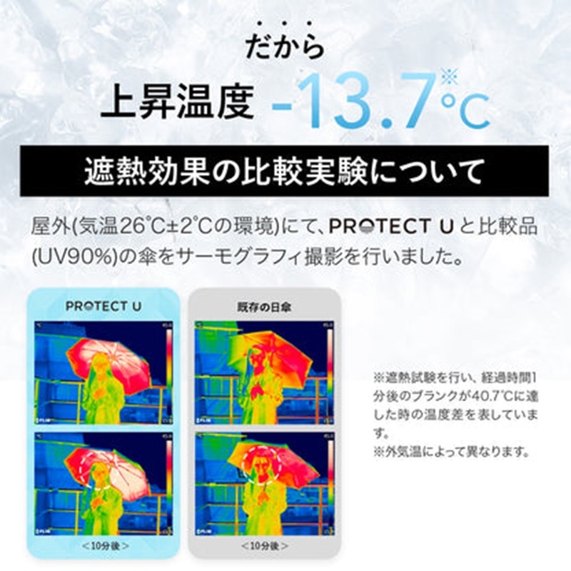 ●上昇温度-13.7℃の超軽量晴雨傘 ●重さがわずか132gで、ほぼおにぎり1個分の重さ ●持ち歩きやお子様でも使いやすいです。