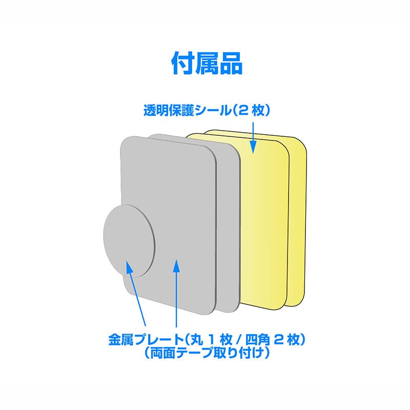 ・スマホケースの内部に取り付ける金属プレートを付属。