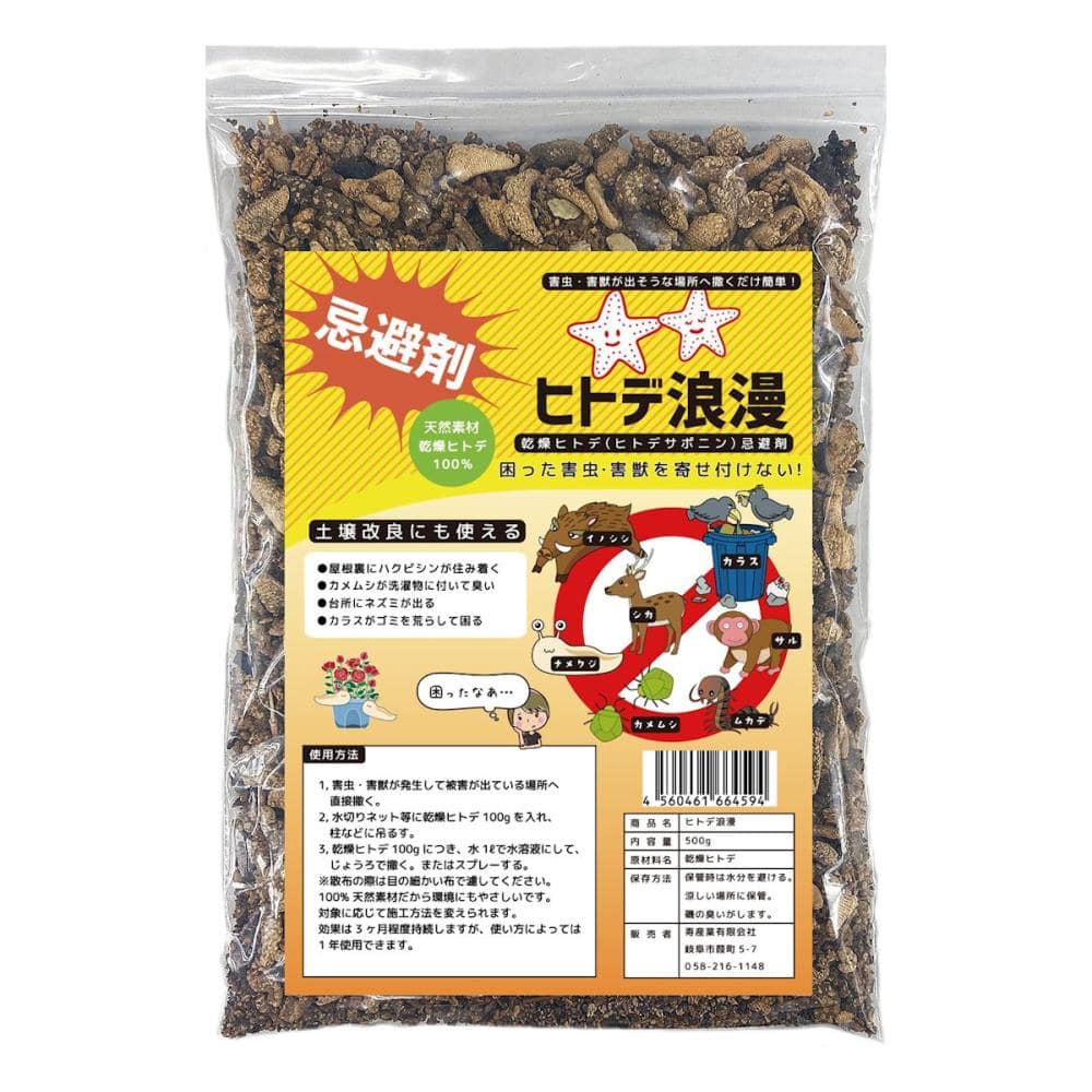 ●天然乾燥ヒトデ(ヒトデサポニン)が困った害虫・害獣をまとめて寄せ付けません。