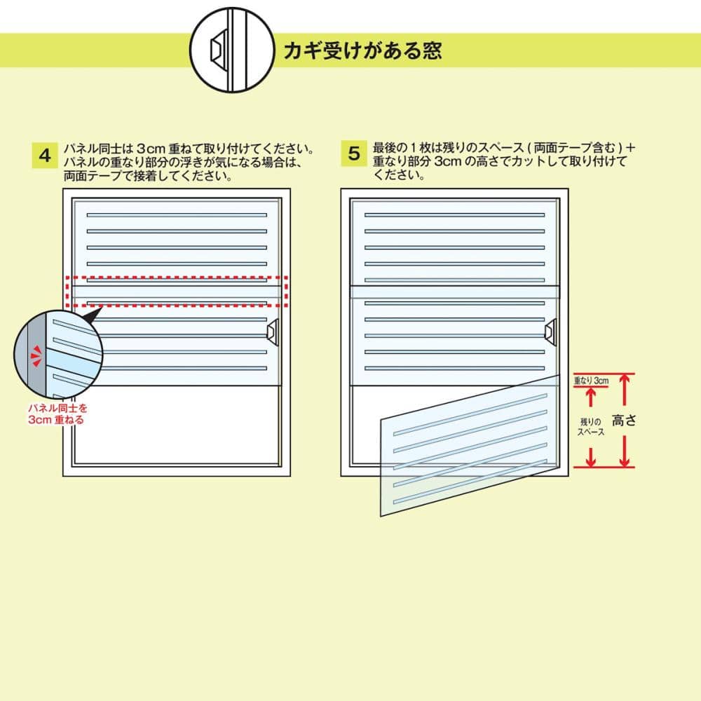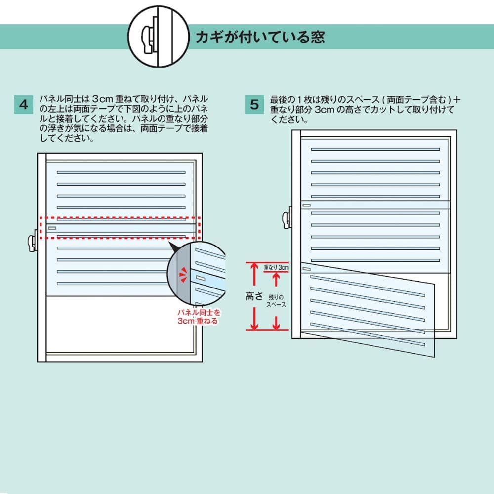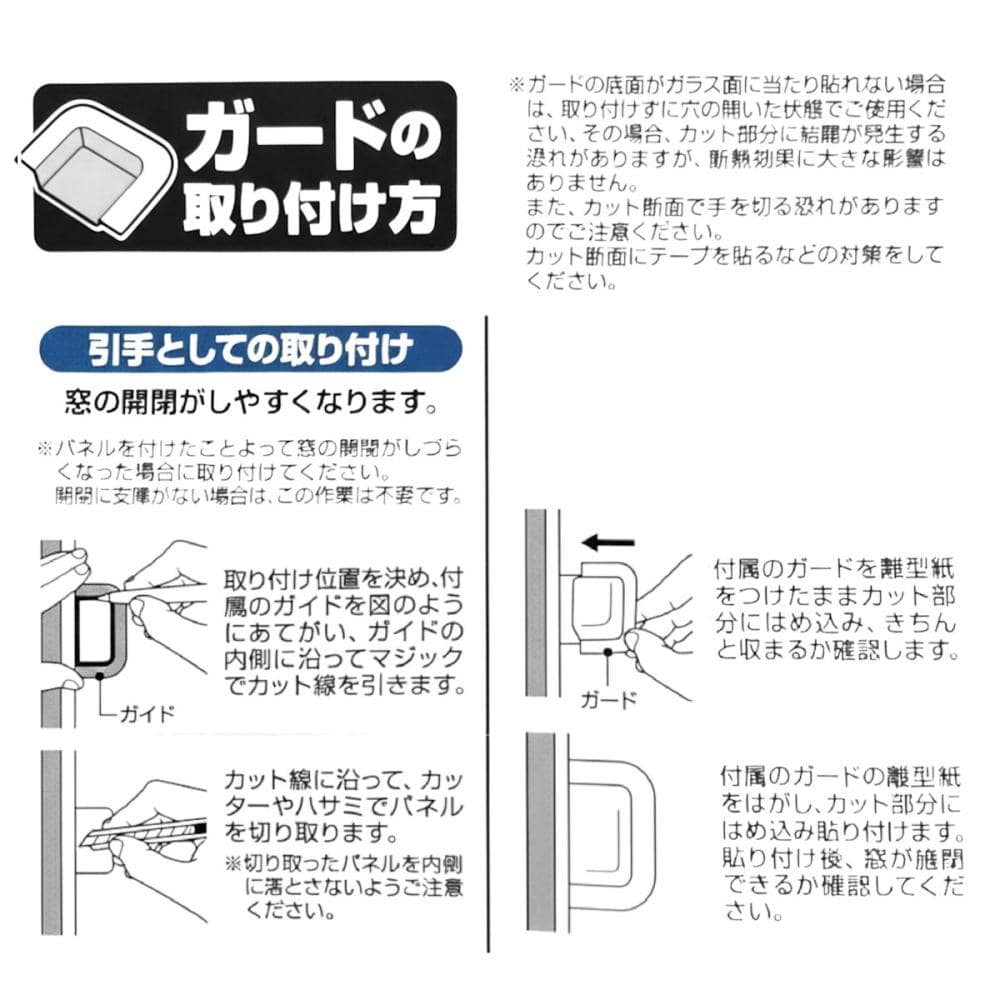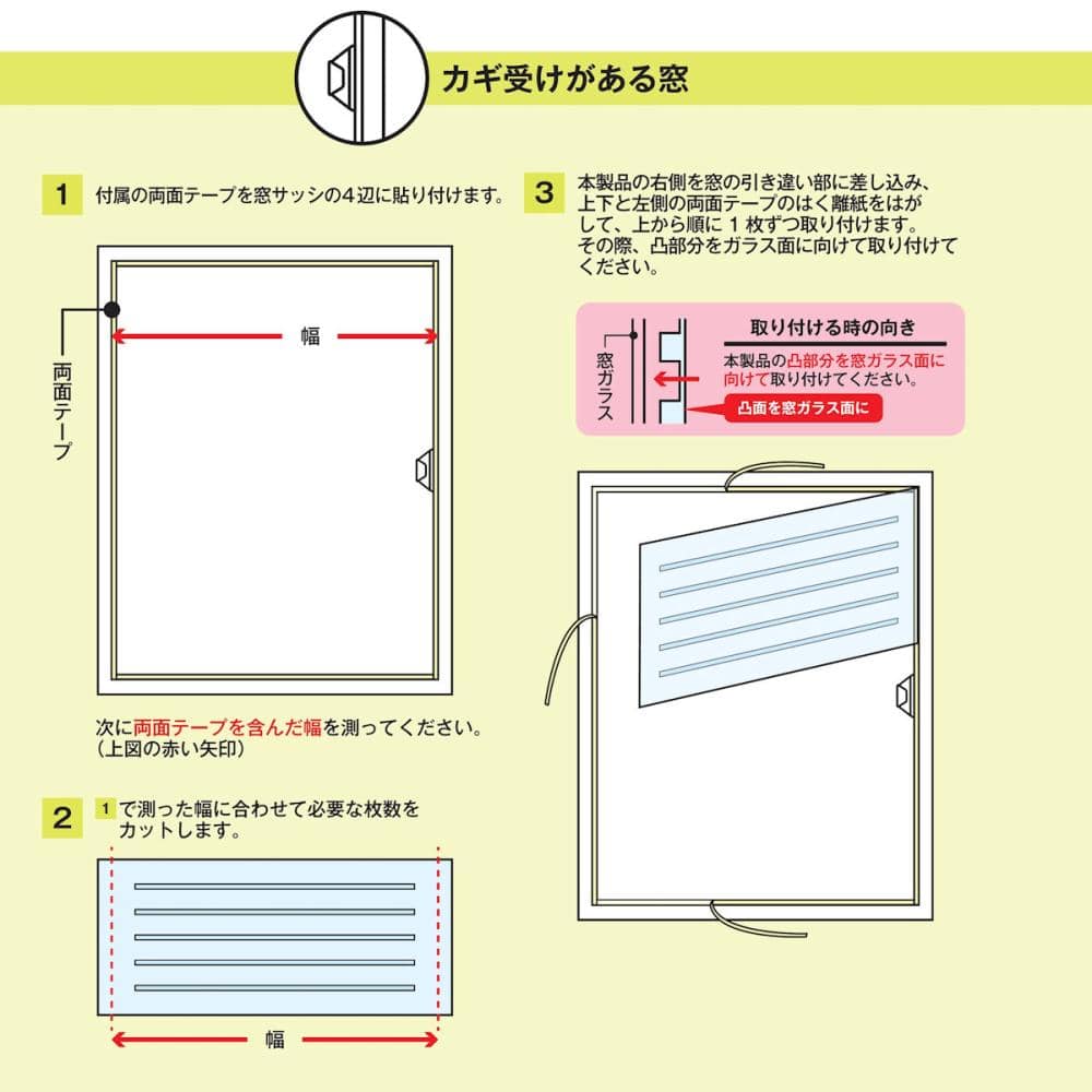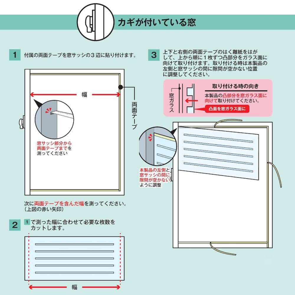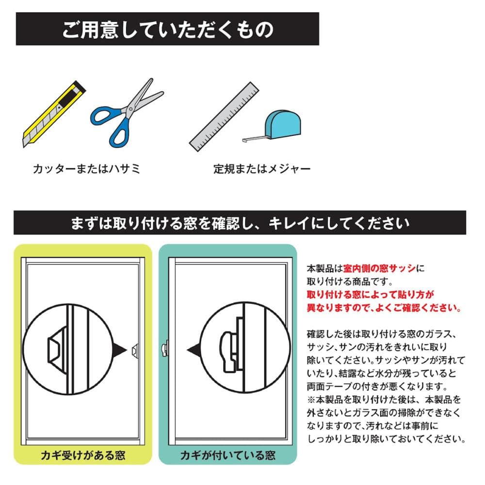 ・本製品は窓ガラスに直接貼り付ける商品ではありません。両面テープを使用し窓サッシに貼り付ける商品です。
