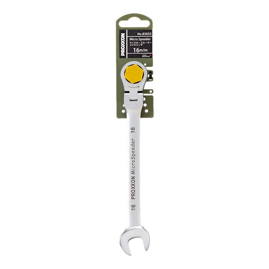 "・サイズ:16mm ・全長=215mm ・ラチェット部幅=30mm ・スパナ部幅=34mm ・ラチェット部厚み=10.6mm ・スパナ部厚み=8.2mm ・重量=190g ・送り角度=5°(72枚ギア)"