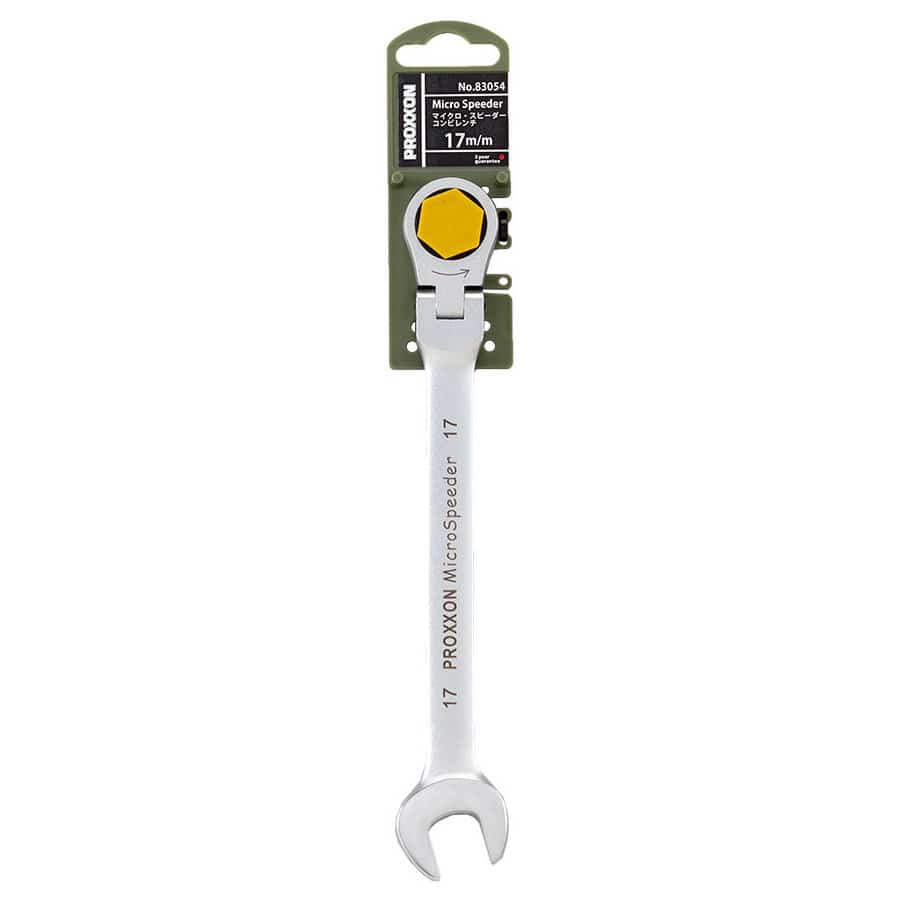 "・サイズ:17mm ・全長=233mm ・ラチェット部幅=32mm ・スパナ部幅=37.5mm ・ラチェット部厚み=10.8mm ・スパナ部厚み=7.7mm ・重量=210g ・送り角度=5°(72枚ギア)"
