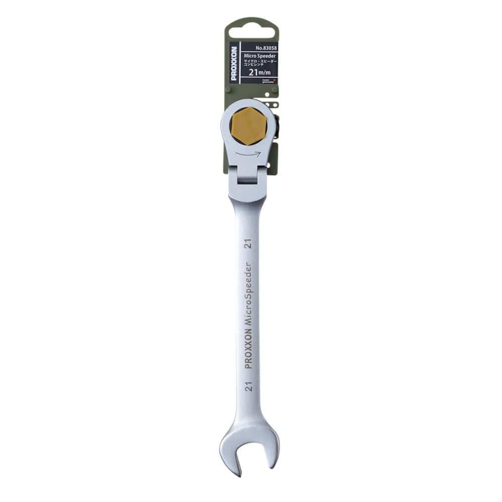 "・サイズ:21mm ・全長=285mm ・ラチェット部幅=42mm ・スパナ部幅=46mm ・ラチェット部厚み=11.4mm ・スパナ部厚み=10mm ・重量=400g ・送り角度=5°(72枚ギア)"