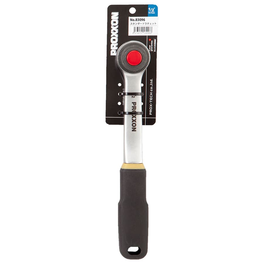 "・差込角:1/2(12.7mm) ・送り角度:6.9° ・52枚歯ギア ・全長:260mm ・重量:550g ・プッシュリリース付回転方向の切り替えはヘッド上部の黒リングで行います"