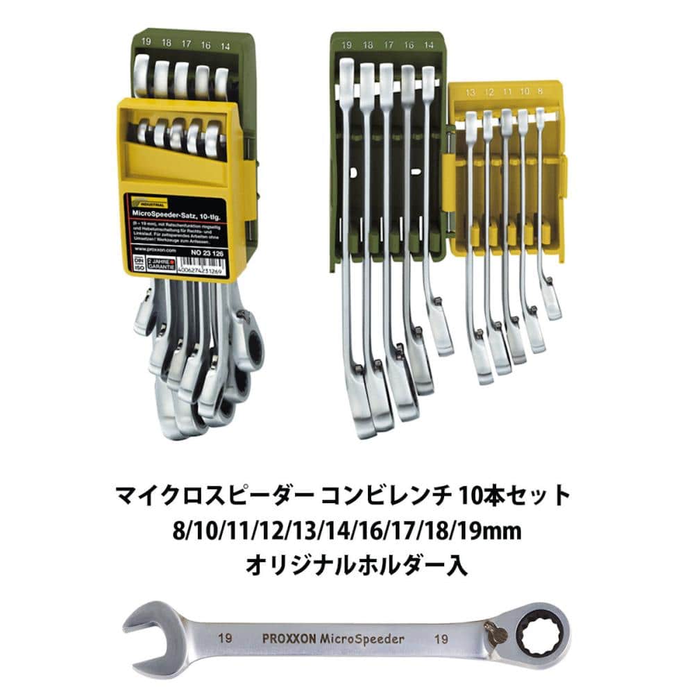 "・マイクロ・スピーダーコンビレンチ(オフセット15° タイプ)10本セット8/10/11/12/13/14/16/17/18/19mm ・専用ホルダー入り 幅285mmx奥行76mmx高さ61mm 重量1.4kg"