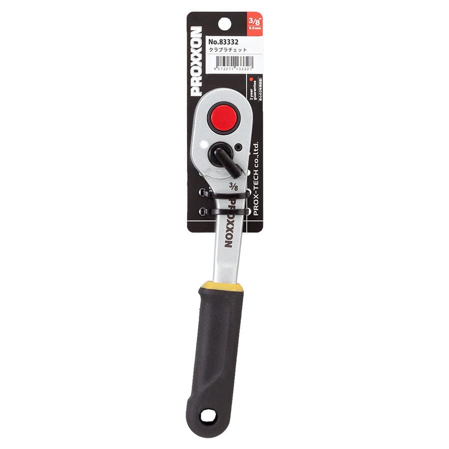 "・差込角:3/8(9.5mm) ・送り角度:5° ・72枚歯ギア ・全長:230mm ・重量:340g ・プッシュリリース付回転方向の切り替えはヘッド上部の切り替えレバーで行います"