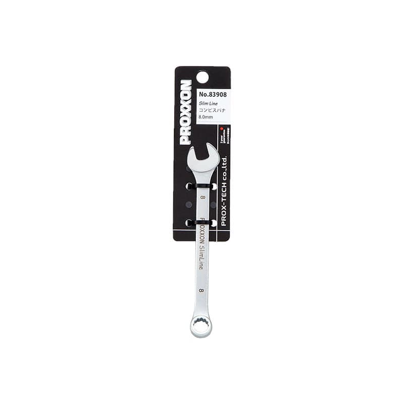 "・サイズ:8mm ・全長=120mm ・スパナ部幅=20mm メガネ部=13mm ・スパナ部厚み=(大)3.5mm ・重量=26g"