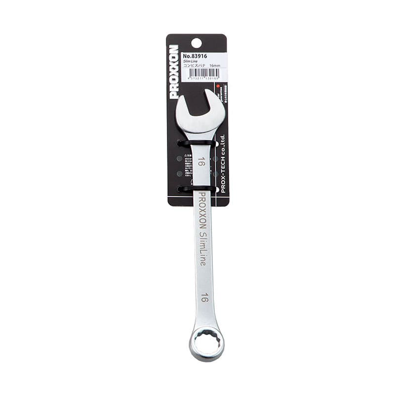 "・サイズ:16mm ・全長=195mm ・スパナ部幅=36mm メガネ部=25mm ・スパナ部厚み=(大)6mm ・重量=102g"