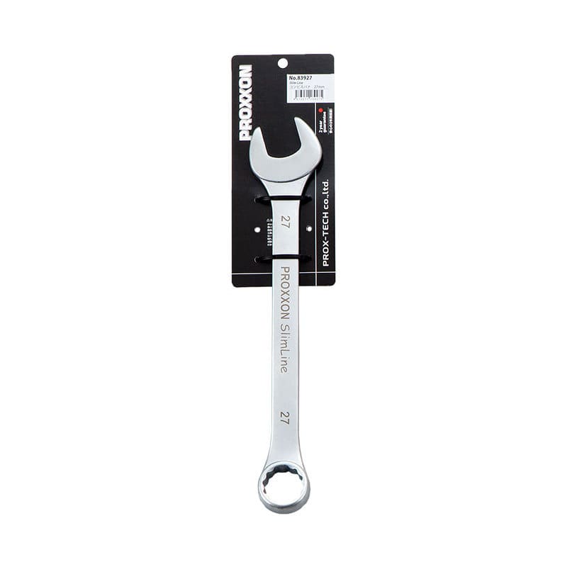 "・サイズ:27mm ・全長=310mm ・スパナ部幅=55mm メガネ部=39mm ・スパナ部厚み=(大)8.5mm ・重量=357g"