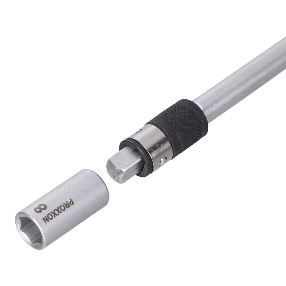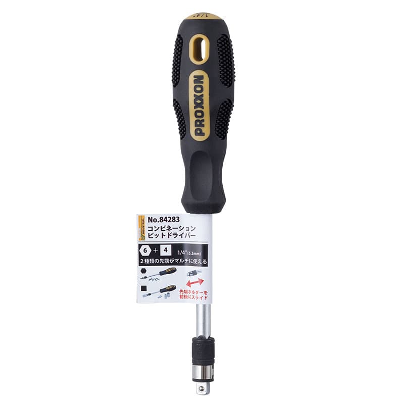"・先端部スライドさせると六角軸差込と1/4(6.3mm)の差込口が併用出来る ・六角軸(マグネット内蔵)1/4(6.3mm) ・全長=210mm ・重量=130g"