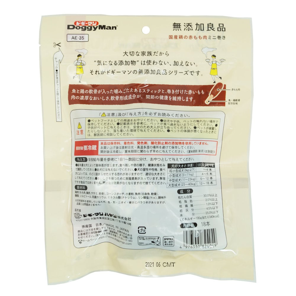 国産鶏もも肉を噛みごたえあるミニサイズのスティックに巻き付けた濃厚なおいしさ。