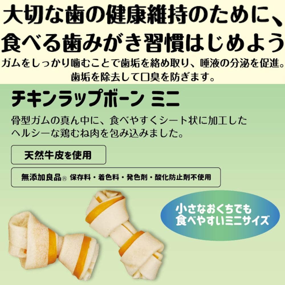ガムが苦手なワンちゃんに、おいしく長く噛めるガムを作りました。骨型ガムの中に胸肉シートを包みました。