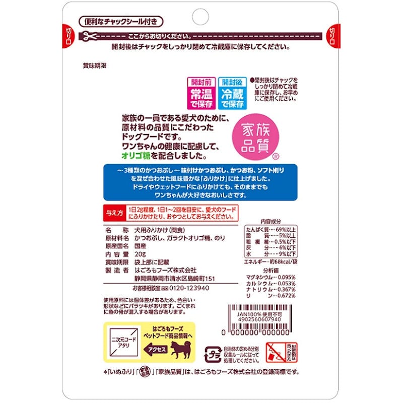 原材料・成分:かつおぶし、ガラクトオリゴ糖、のり