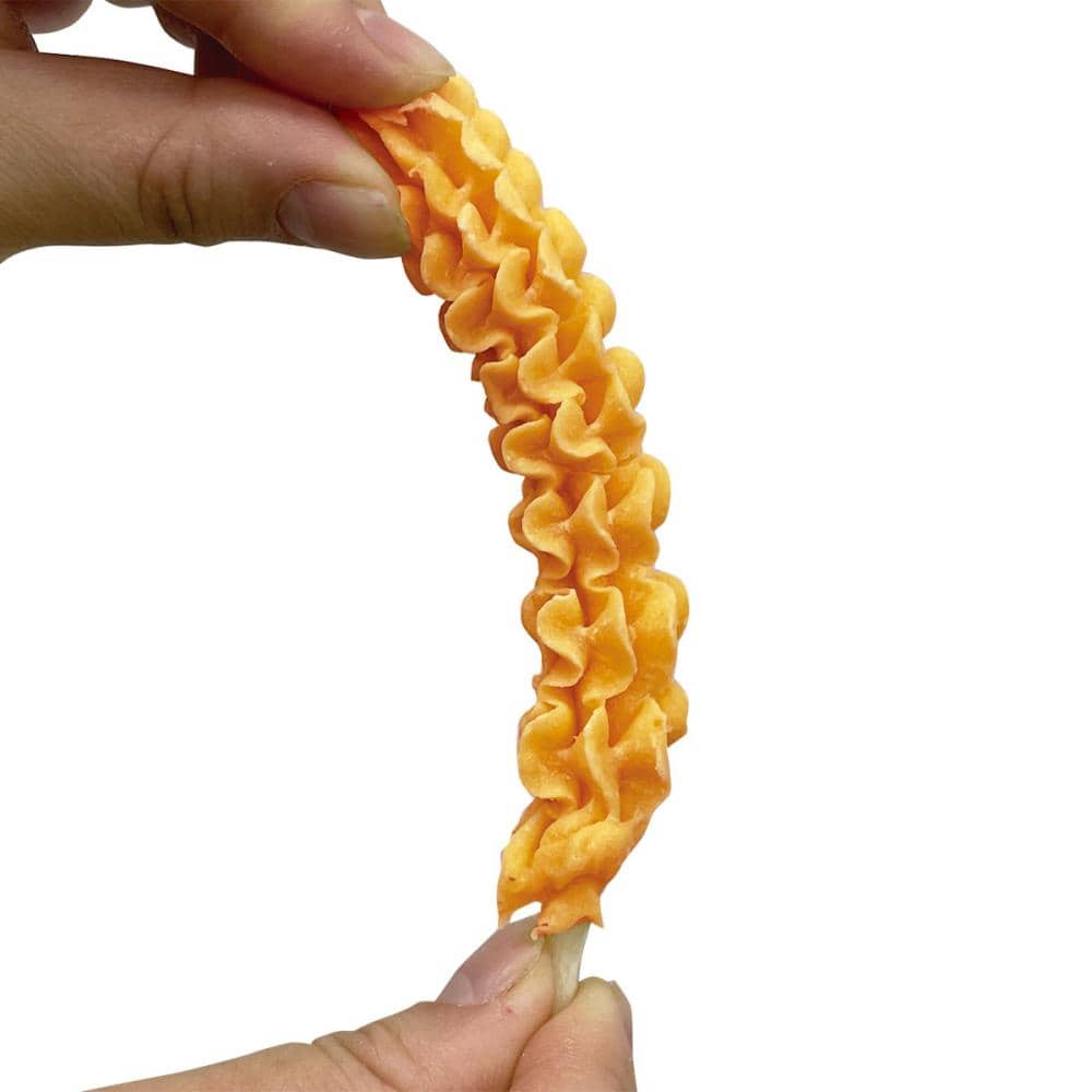 ケーキの「ホイップ」のように、さつまいも生地をガムにコーティング。 見た目もおもしろく、素材の味が楽しめるスナックです。 便利な個包装だからお友だちにも分けやすい!着色料・香料無添加。 農林水産省認定 鳥加熱処理工場製造。