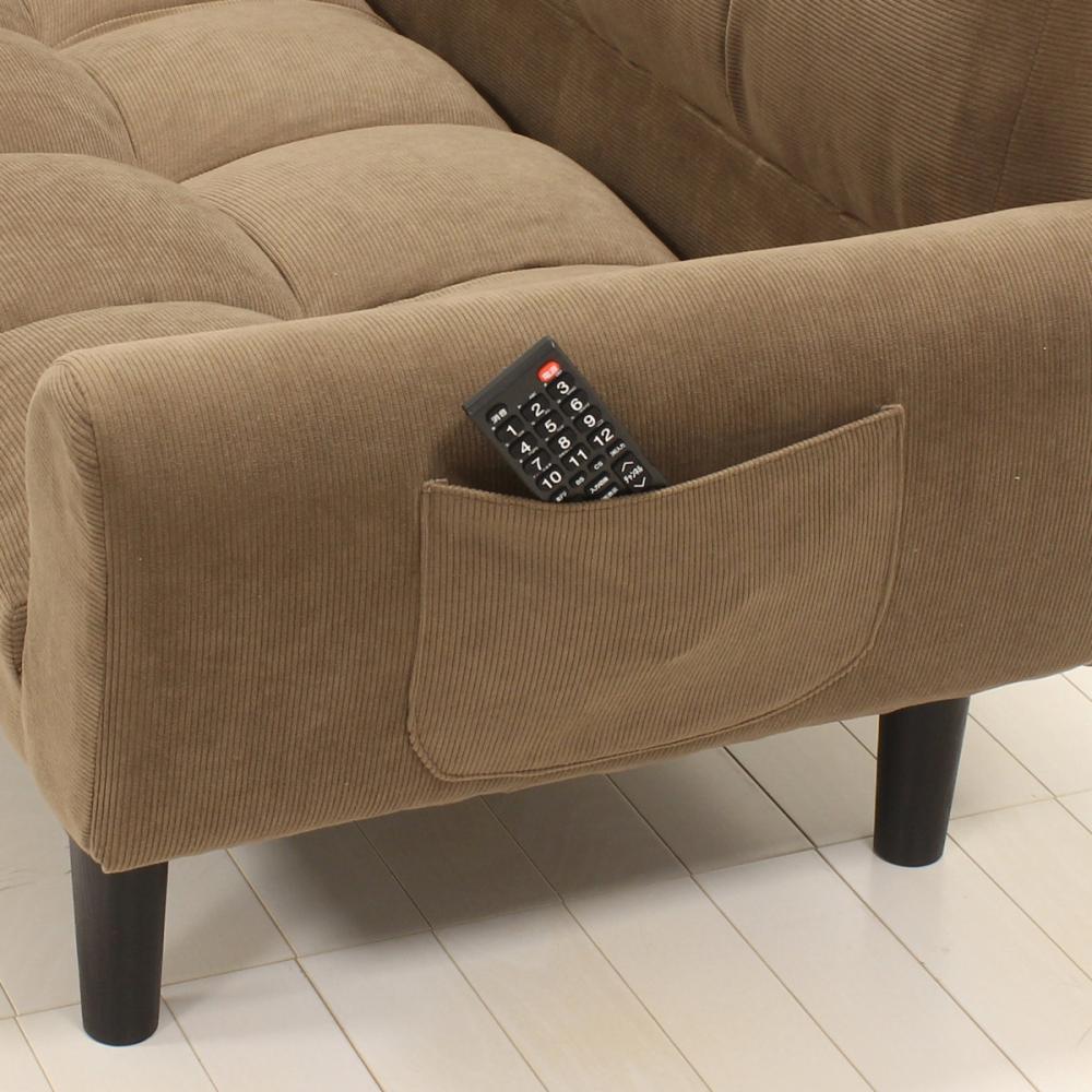 ■小物やリモコン類が収納できる便利なポケットが両サイドに付いています。