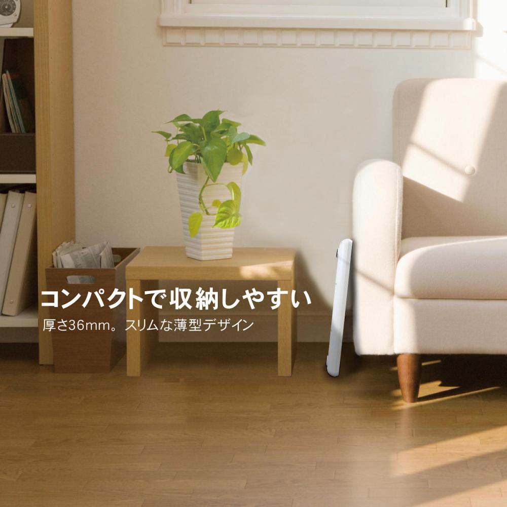 温度調節機能:3段階(弱・中・強) スチール面に設置可能:設置用マグネット搭載 角度調節機能:収納式スタンドで約15°~45°の調節ができます。 安心・自動 OFF 機能:切り忘れ防止のため、約8時間で自動で停止します。