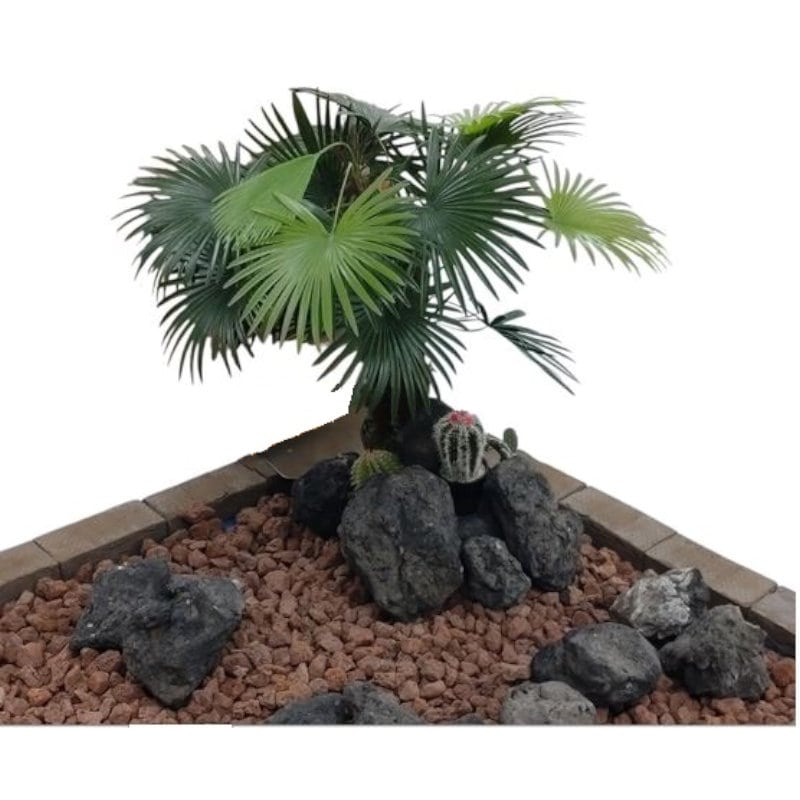 単色の溶岩石と色合いのある草花を合わせるとより草花が目立ちお庭を引き立たせます