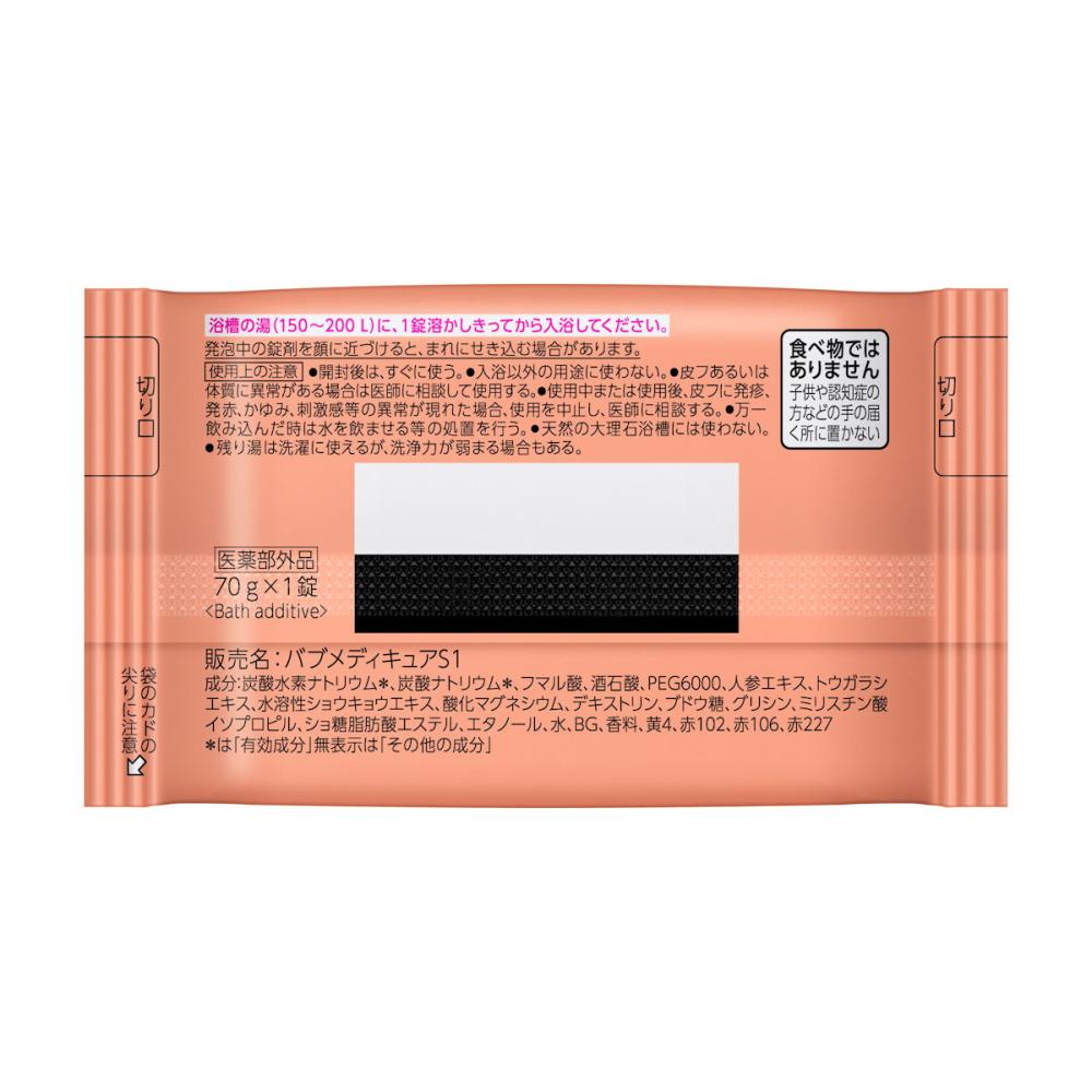 商品の利用(調理)方法:浴槽の湯(150~200L)に、1錠溶かしきってから入浴してください。 発泡中の錠剤を顔に近づけると、まれにせき込む場合があります。