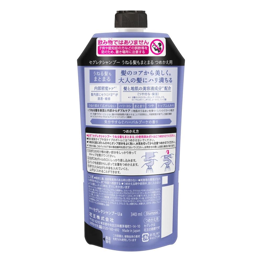 髪のコアから美しく。大人の髪にハリ満ちる。うねる髪もまとまる。 ●内部密度ケア*1 セラミドS*2が浸透・補修 ●髪と地肌の美容液成分配合(つや付与・保湿):6種のエキス(ローズヒップ、ザクロ、バラ、ローヤルゼリー、ダイズ、ユーカリ)、リンゴ酸 ●うねる髪を表面と内部からダブルケア ●ノンシリコーン処方 ●気分やすらぐハーバルブーケの香り *1髪内部を補修 *2ビスメトキシプロピルアミドイソドコサン(補修)