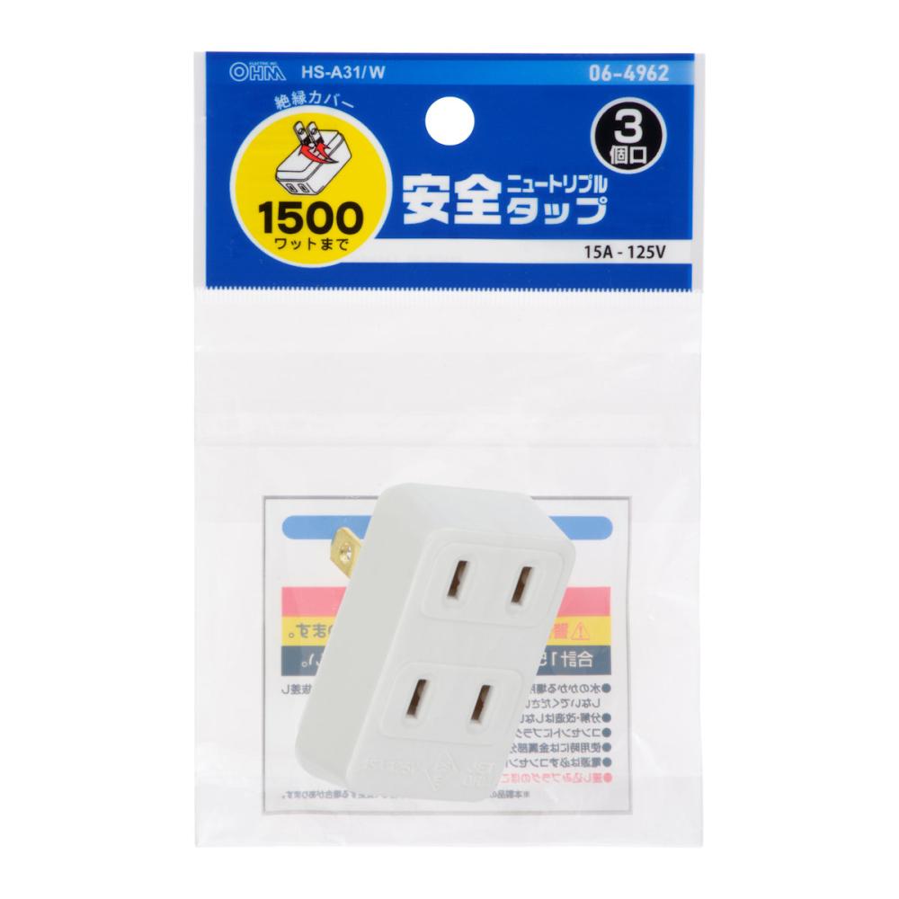 オーム電機 ニュートリプルタップ 3個口 ホワイト