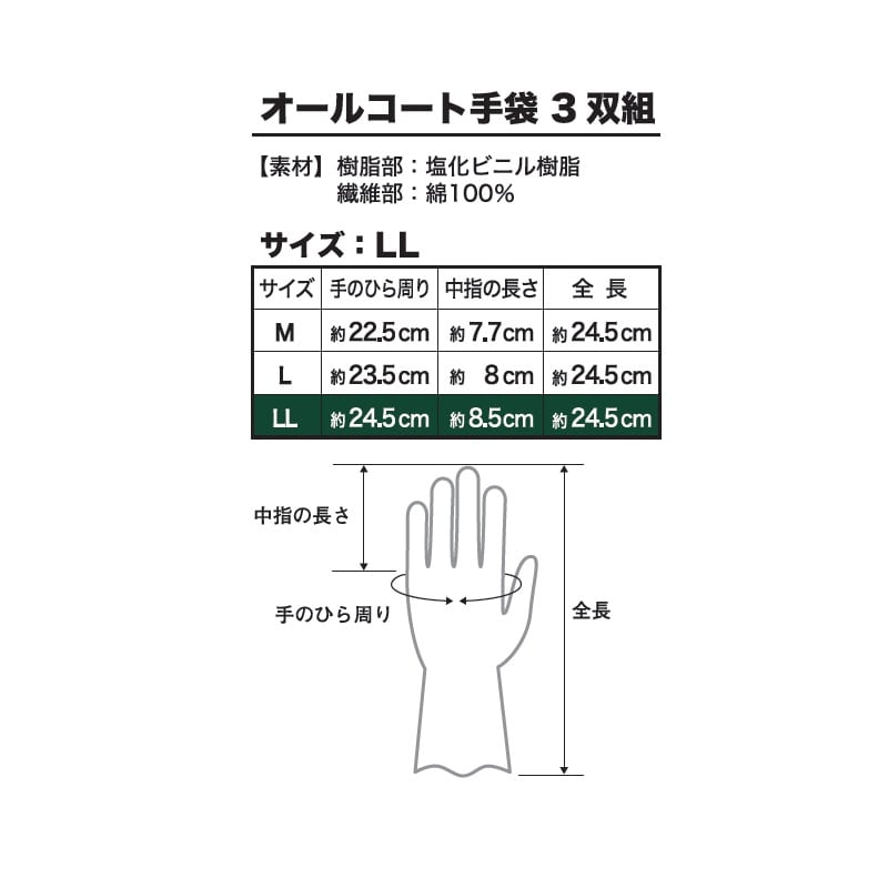 単品サイズ:全長:約24.5cm 中指の長さ:約8.5cm 手のひら周り:約24.5cm