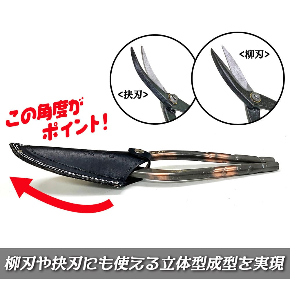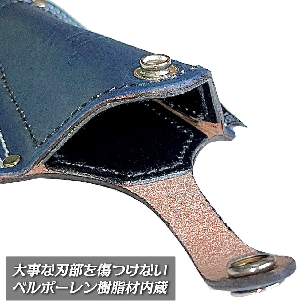 ●直刃のほか柳刃やエグリ刃が湾曲した金切鋏の収納も可能 ●3色のカラーバリエーションの使い分けで刃先の保護はもちろん識別も管理楽々 ●直刃はもちろん柳刃やエグリ刃など刃先が湾曲した板金鋏も完全対応。規格サイズ300mmまで使用可能です。 ●収納部の内側は全面樹脂補強を採用。さらに鋏が当たる場所に金具が無いので大事な鋏を傷つけません。 ●太陽光による変色や老化を防ぐ色染め革素材のツールケース ●縫製は太目の糸で二重仕上げ、リベット部も耳革を追加装備しているのでダメージの多い箇所の補強もバッチリです。