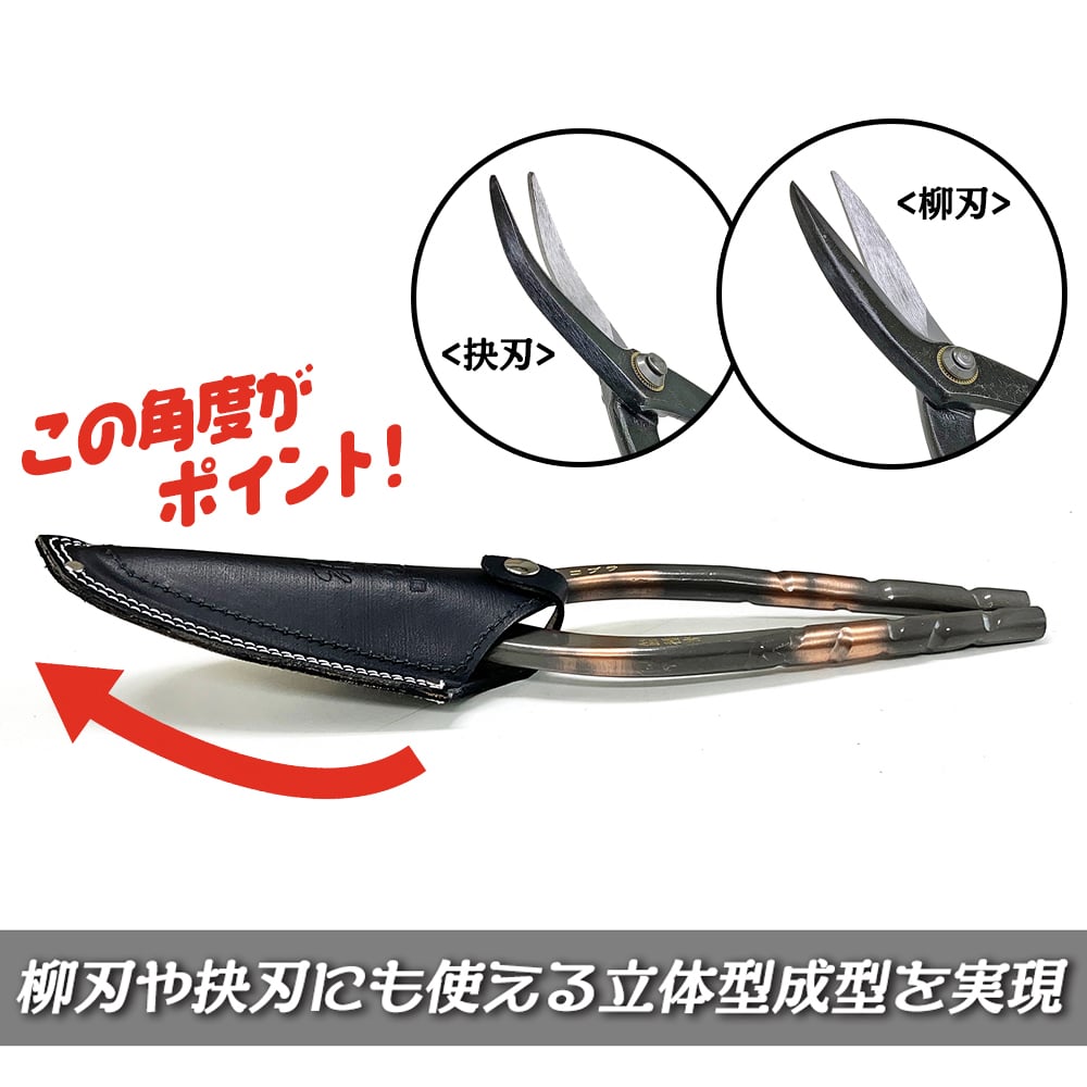 ●直刃のほか柳刃やエグリ刃が湾曲した金切鋏の収納も可能 ●規格サイズ300mmまで使用可能です。 ●収納部の内側は全面樹脂補強を採用。さらに鋏が当たる場所に金具が無いので大事な鋏を傷つけません。 ●太陽光による変色や老化を防ぐ色染め革素材のツールケース ●縫製は太目の糸で二重仕上げ、リベット部も耳革を追加装備しているのでダメージの多い箇所の補強もバッチリです。