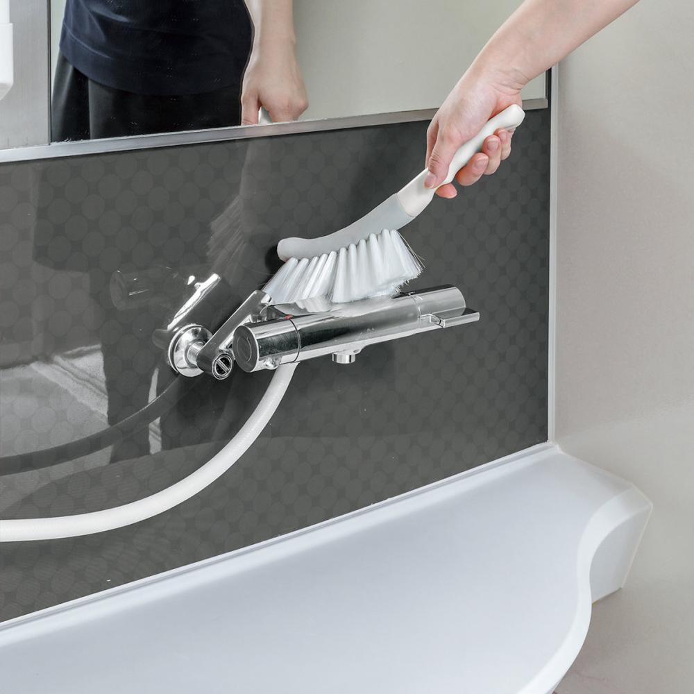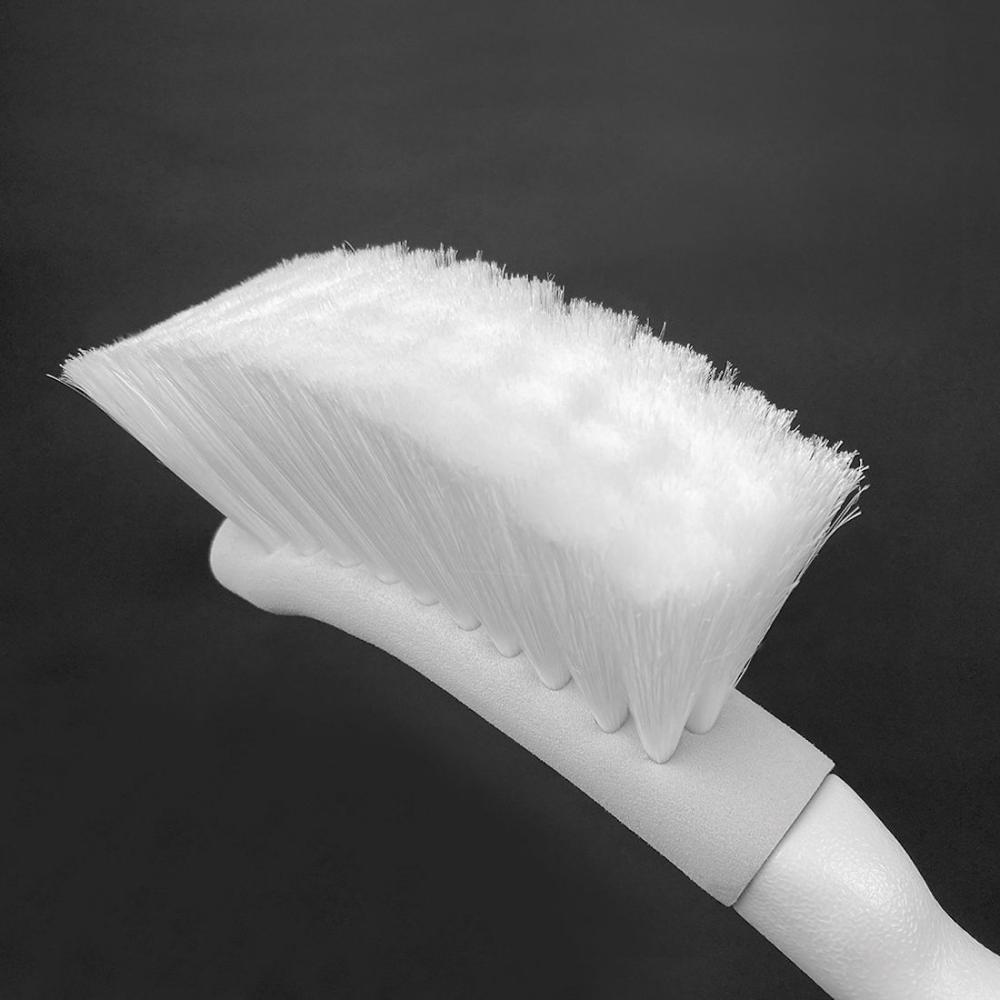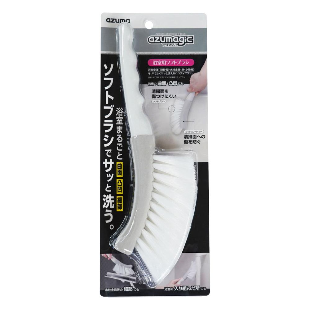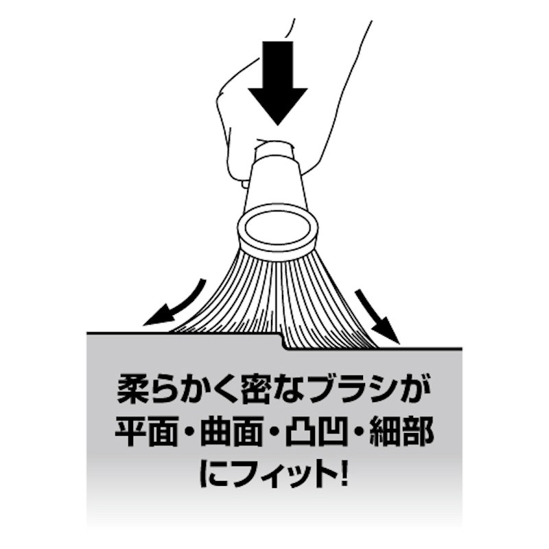 ■柔らかい毛を密に植毛したブラシが清掃面(平面・曲面・凸凹・細部等)にフィットして、浴槽・壁・水栓金具・床など浴室全体をサッと洗えます。 ■中空(ストロー状)の毛先を割いたソフトブラシなので、清掃面を傷つけにくく、やさしく洗うことが出来ます。 ■ヘッドをスポンジでカバー(クッション付ヘッド)しているので、清掃面に当たっても傷づけにくく安心です。 ■軽くて扱いやすいグリップ付のハンディブラシです。
