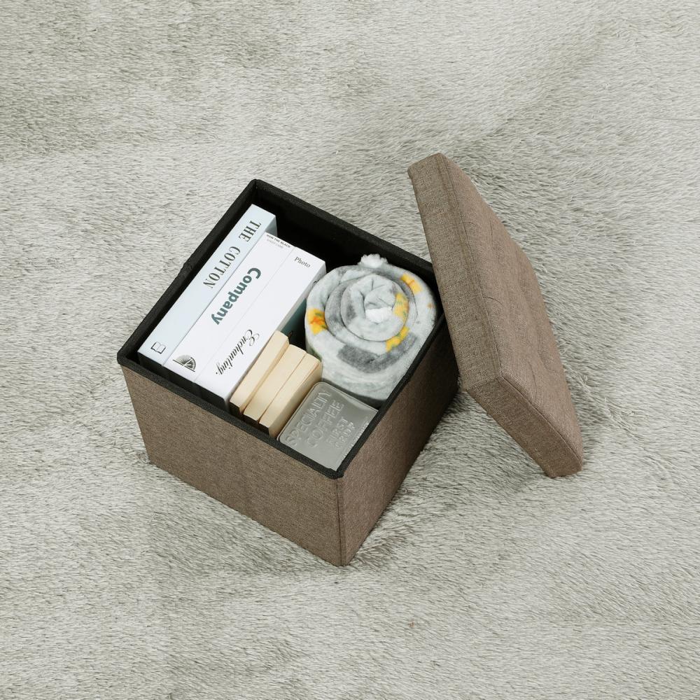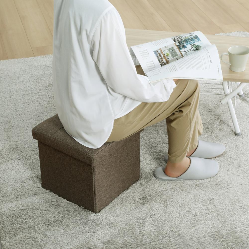 ■座面がフタになっていて、スツール内に小物を収納することができます。本やお子様のおもちゃ、いざというときの防災グッズなどを気軽に収納。